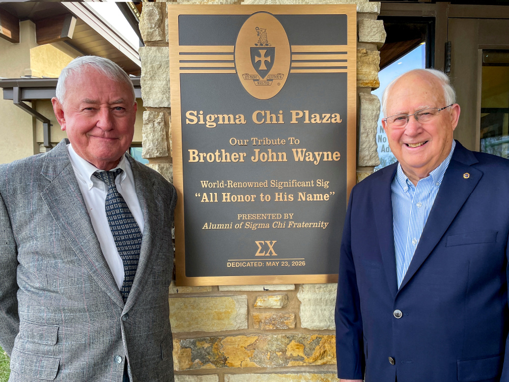 A native Iowan himself, Shields wondered how the fraternity’s most celebrated member could be honored at his Birthplace & Museum. It was suggested that a gift of $250,000 would qualify Sigma Chi Alumni for naming rights to the museum’s plaza. It was a tall order but Shields formed a committee that successfully passed the hat to members nationwide.